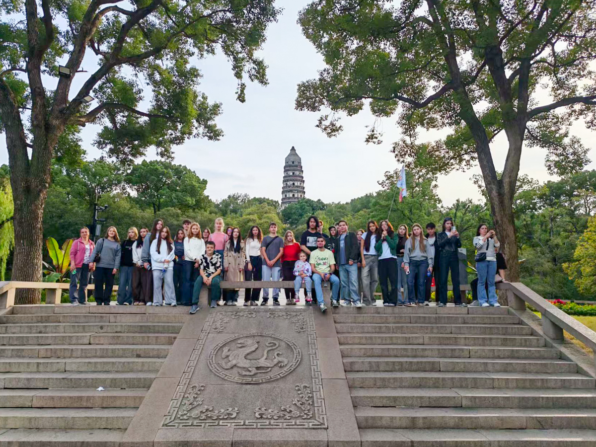 在苏州,代表团还参观了中国四大名园之一的拙政园和有“吴中第一名胜”之称的虎丘。拙政园的疏朗自然、富于野趣,让师生们领略了中国古典园林的巅峰之作;而虎丘的悠久历史与传奇故事,则让他们对苏州深厚的文化底蕴赞叹不已。
